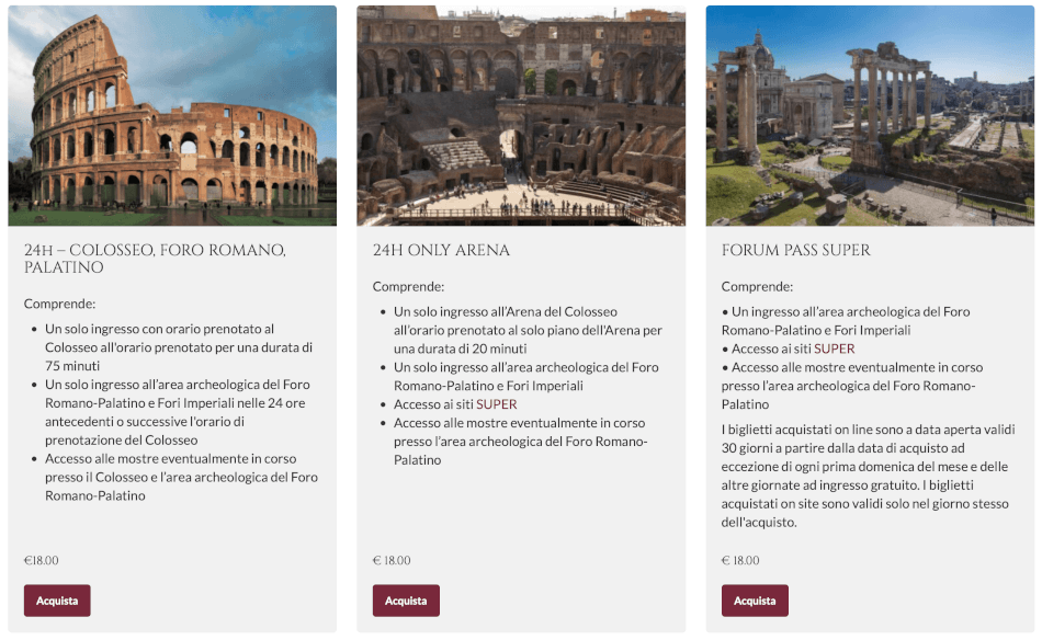Es gibt unzählige Anbieter, die teilweise stark in ihren Preisen variieren. Die sicherste und meist günstigste Option ist die offizielle Seite des Archäologischen Parks. Doch auch diese hat ihre Tücken und wirft auf den ersten Blick einige Fragen auf.
